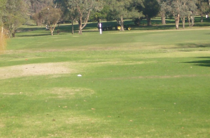 Arguably the hardest hole on the course, the drive requires a hazard carry to the edge of the dogleg. If you hit it right, get your 7 iron out to chip it back to the fairway. The flat green is covered left and right by bunkers, of which up and down is tough. Many good rounds have turned ugly here.